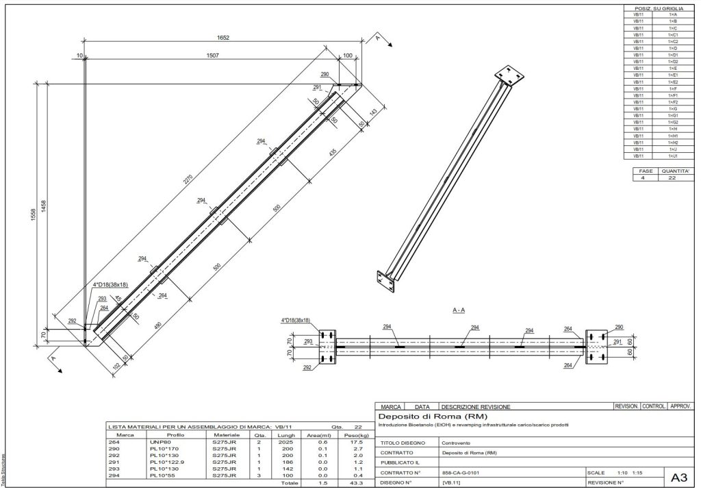 Per il Deposito IP di Roma (RM), nell’ambito del progetto di introduzione bioetanolo (EtOH) e revamping delle infrastrutture di carico/scarico, abbiamo svolto un’attività mirata di rimodellazione completa di una carpenteria metallica complessa finalizzata alla produzione di disegni di officina a supporto della ditta Signorello S.r.l.